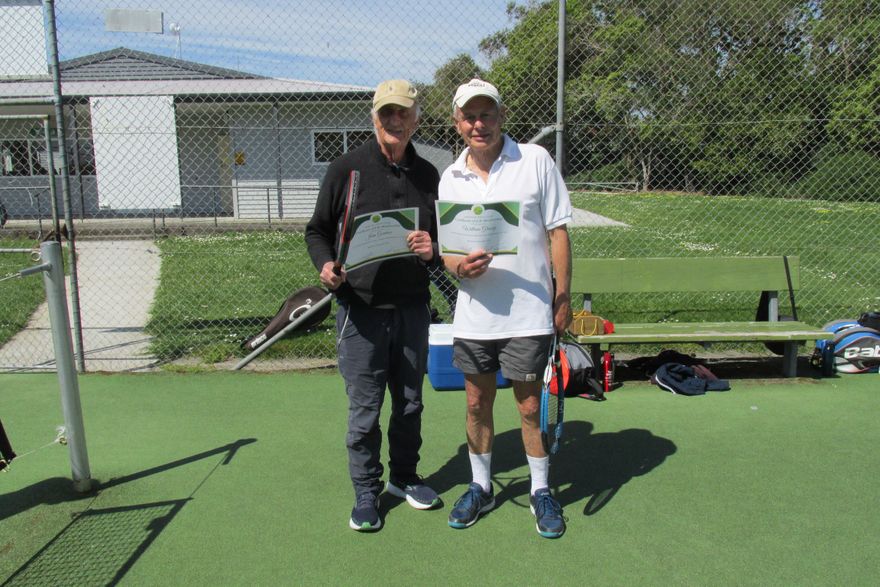 John Gardner (left) and Bill Glassey were made life members of the Awapuni Tennis Club on 21 October 2023 to recognise their long service to the club in which they had been respectively treasurer and secretary of the club over a number of years. Here they are photographed holding their life membership certificates.