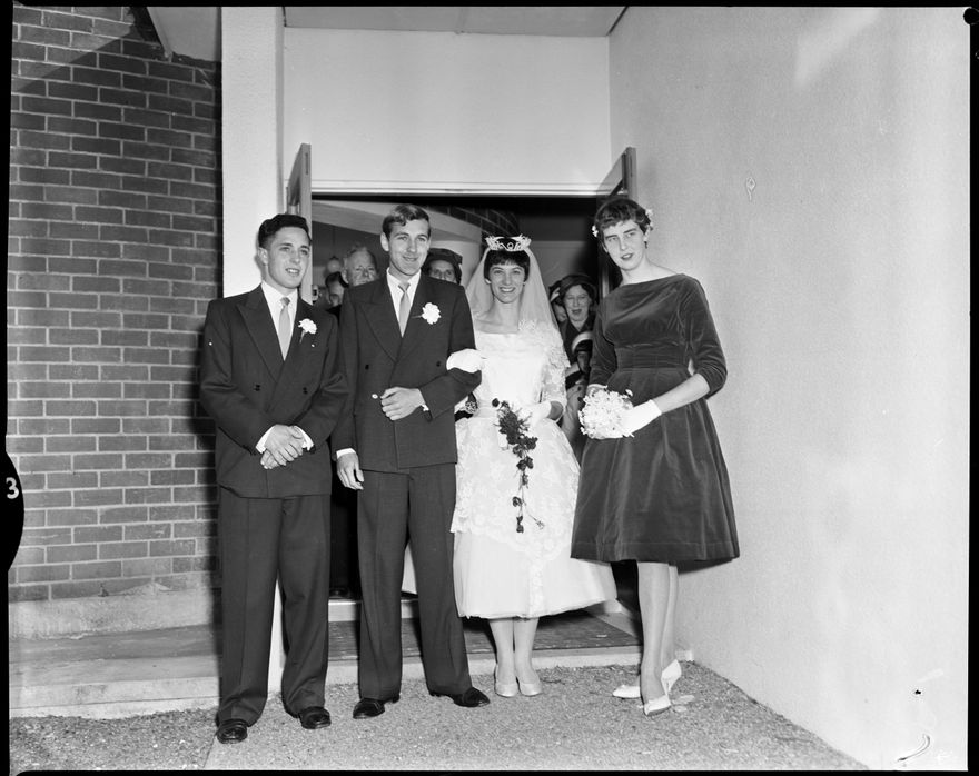 This image was taken for a story that ran in The Manawatu Evening Standard on 15 August 1960 "Nurse K.A. Coronno of the Palmerston North Hospital, was married to Mr. T.T. Cochrane on Saturday at the Hospital Chapel. They leave tomorrow night for Trinidad where Mr. Cochrane is taking a college course. Mr. K. Fisher was the bestman and Miss M. Hartnell was the bridesmaid."