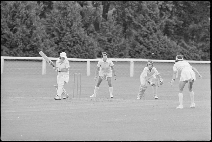 This image was taken (but not published) by the Evening Standard between the 27th and 29th of December 1980. It depicts a moment of action from the Hallyburton Johnstone Shield 2-day match between the Central Districts and North Shore women’s cricket teams. The match was drawn.
