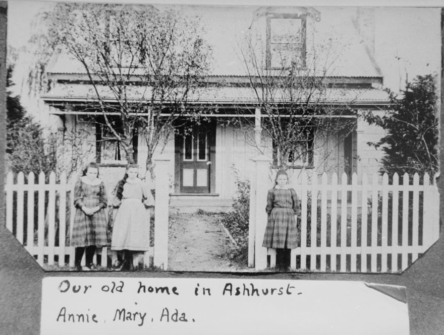 This house is believed to originally have been 'Havenhoe', owned by the Bauckham Family. The three girls standing in front of the fence have been identified as Annie, Mary and Ada, daughters of the owner, Wattie Brewer.