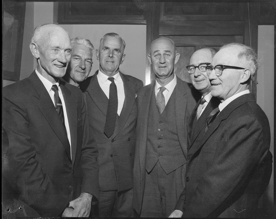 [Photograph of a group of men, some of whom are retiring from postal work.]