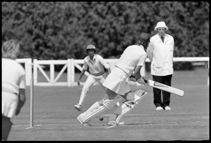 This image was taken (but not used) by the Evening Standard on 20th of January 1982 and published on the 21st. It depicts the Australian women’s cricket team taking on the International XI women’s team in a limited over match for the Hansell's Vita Fresh Women's World Cup 1981/1982. The match was held at Fitzherbert Park in Palmerston North. The Australian team won by 64 runs.