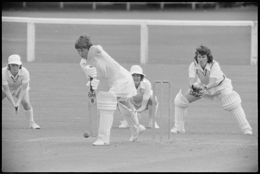This image was taken (but not published) by the Evening Standard between the 27th and 29th of December 1980. It depicts a moment of action from the Hallyburton Johnstone Shield 2-day match between the Central Districts and North Shore women’s cricket teams. The match was drawn.