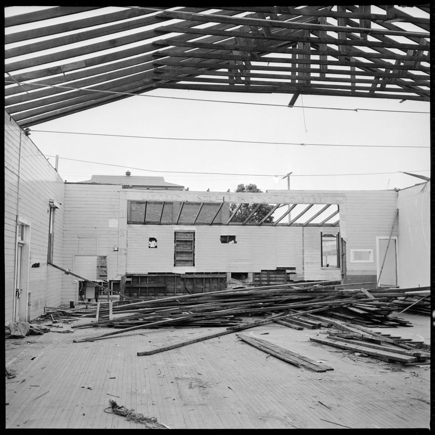 This image was taken for a story that ran in The Manawatu Evening Standard on 29th January 1966 "The old Kiwi gymnasium in Palmerston North is demolished to make way for a £04,000 replacement."