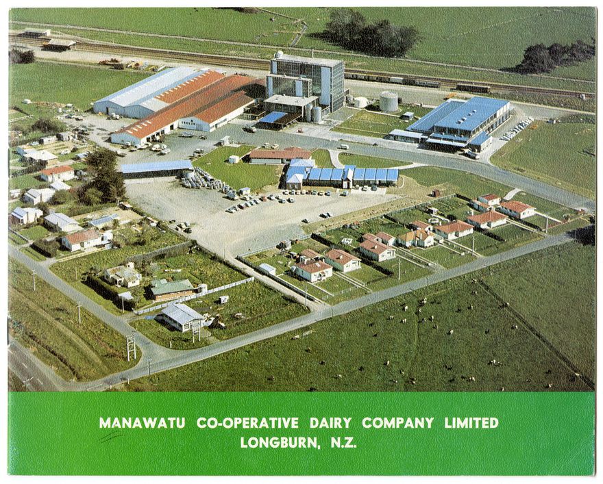 The Manawatū Co-operative Dairy Company Ltd was established in 1960 following the merger of the Awahuri and Rongotea Co-Operative Dairy Companies. To cope with the enlarged intake of milk and cream a continuous butter making system was planned and a new butter factory was opened in 1968. At the time, it was the third largest dairy co-operative in New Zealand, having an ultimate capacity of 20,000 tons of butter a year, a whole milk capacity of 3000, 000 gallons of milk daily and production value of $11,000,000 annually. This booklet lists the Board of Directors, provides and history of the company, details the new continuous butter making system, and gives an overview of the facility.