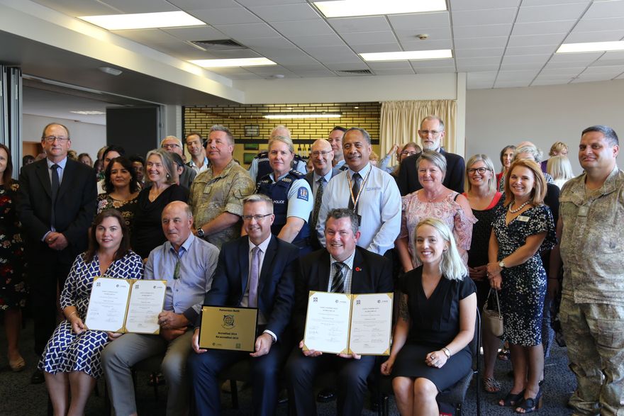 - Safe Communities Coordinator, Zoé Kavanagh (seated, far right), with the Safe Communities Advisory Board and the broader community at the re-accreditation event.