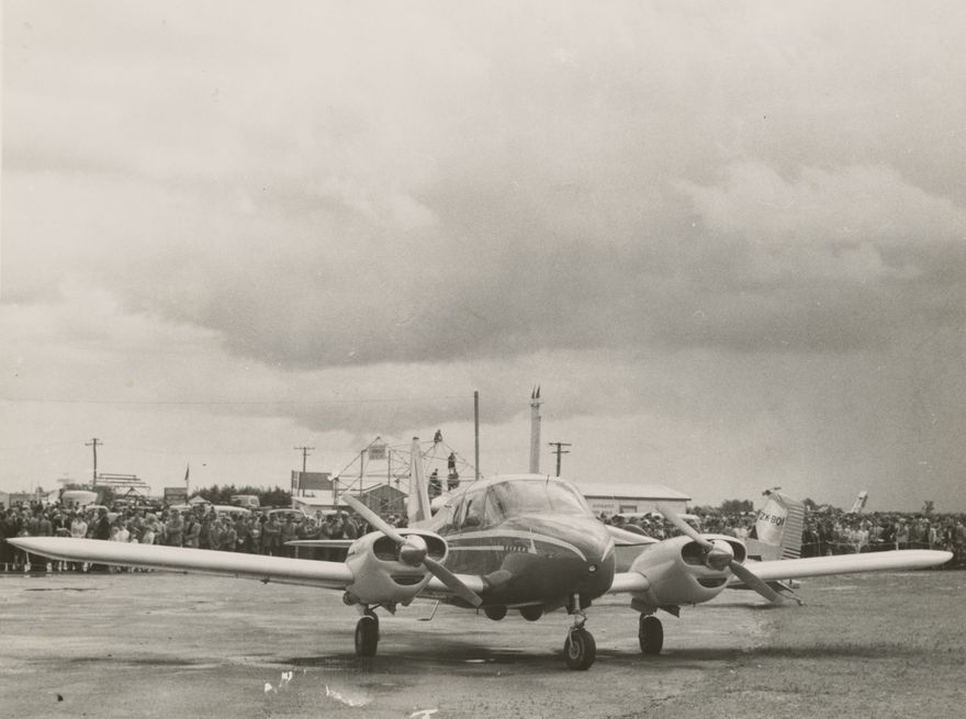 Crowds watch a Piper Apache aircraft at the first International Aviation Show, held at Milson Airport, Palmerston North.