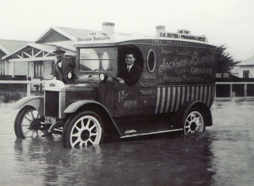 Harry Jackson and John James Craven operated their “High Class Grocer’s and Provision Merchants” business from 88 The Square in 1930. They are possibly the driver and passenger in the photograph.