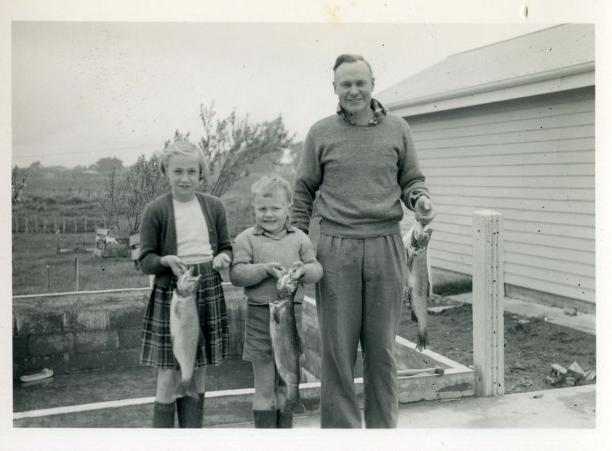 Leonard Amey of Rongotea with his children Karen and Perry after a fishing trip to Turangi.