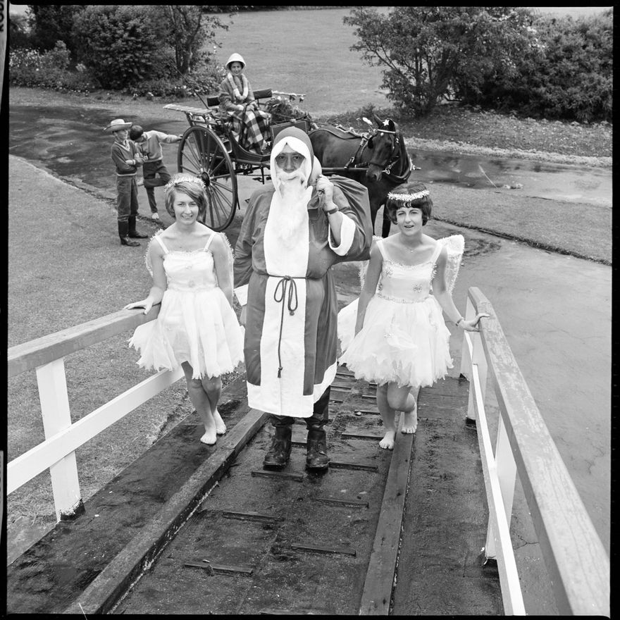 [Image of Father Christmas, accompanied by two Christmas fairies, with the horse & cart in the background.]