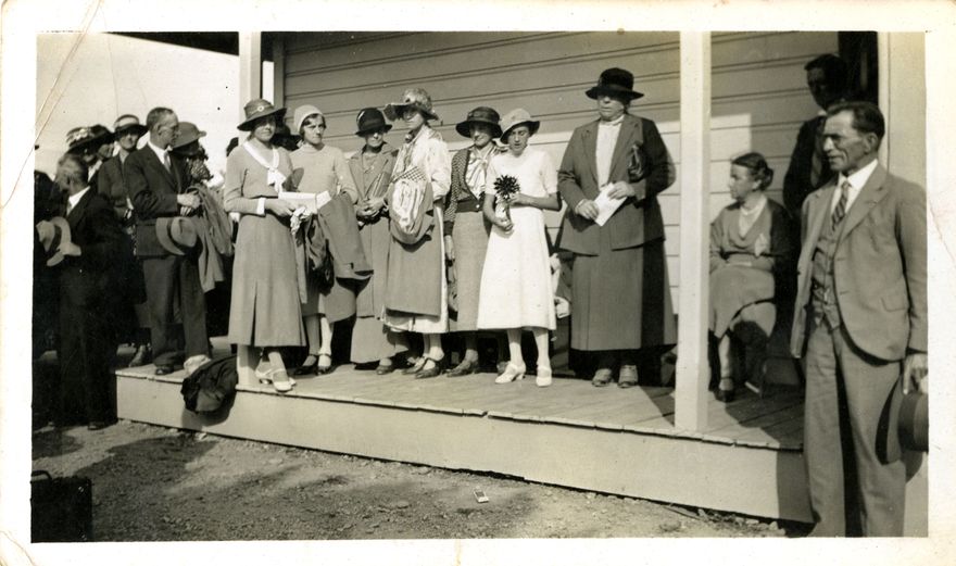 Members of the Wellington Horticultural Society on their yearly visit. Mrs Konx-Gilmore is speaking.