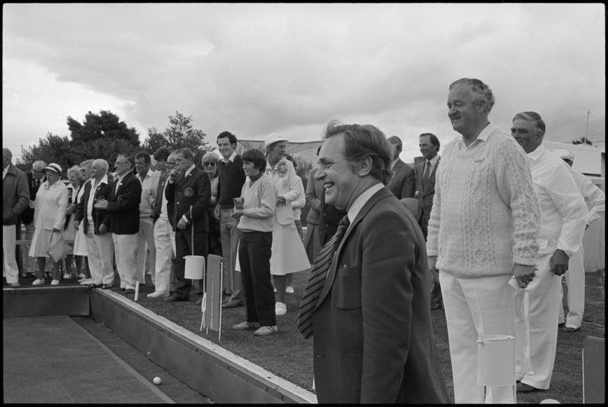 This image was taken by the Evening Standard but was not published. A different image appeard in the 5th of October 1982 edition with the caption: "RANGITIKEI MP Bruce Beetham is all smiles as he polishes up a bowl in readiness for the opening of Ashhurst's first bowling club on Saturday."