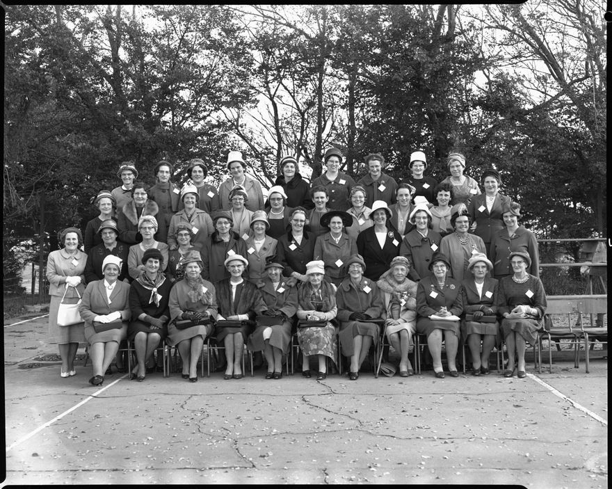 A group of about forty women attend the Linton School Jubilee. This negative comes from the Elmar Collection - a large series of semi-identified and unidentified images from the 1930s-1970s.