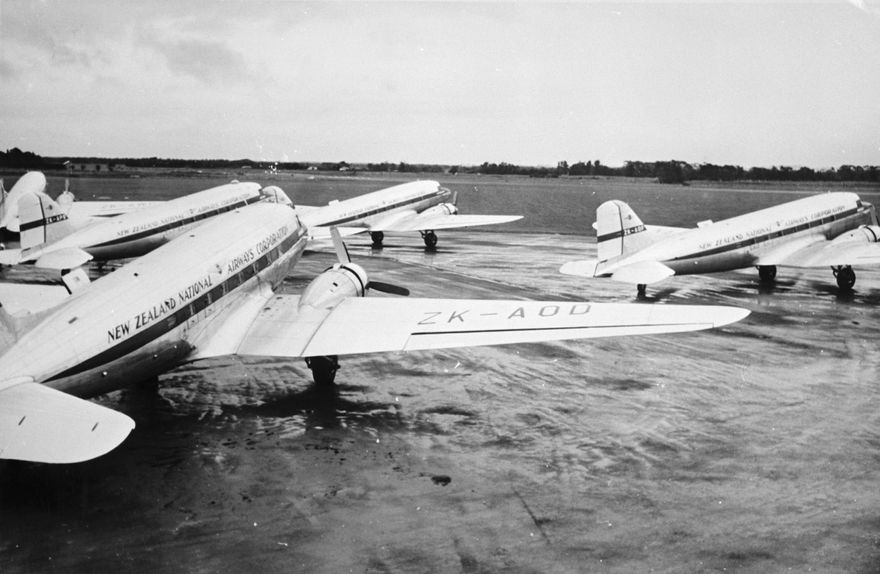 National Airways Corporation aircraft parked at Milson Airport, Palmerston North.