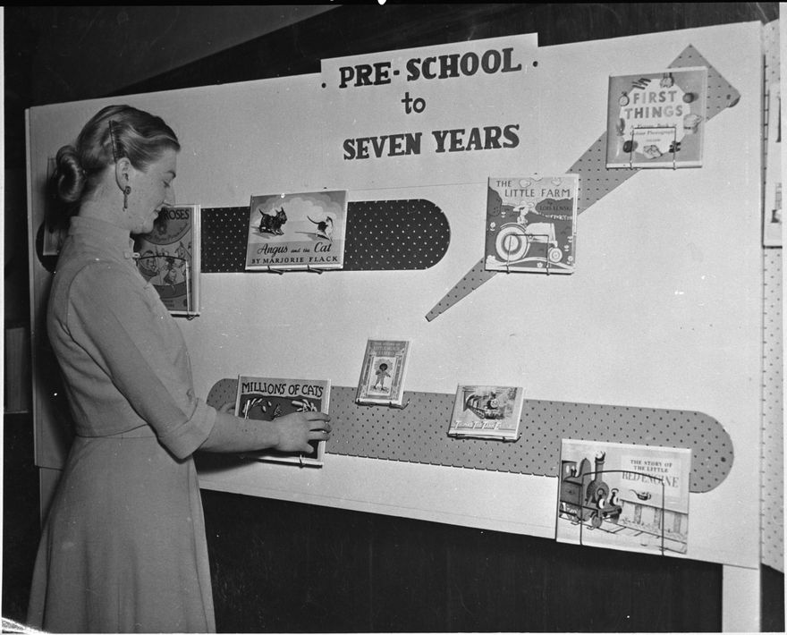 Miss Fay Jewell, see with the book week display, was Children’s Librarian, and worked at the Palmerston North Library 1950-1968.