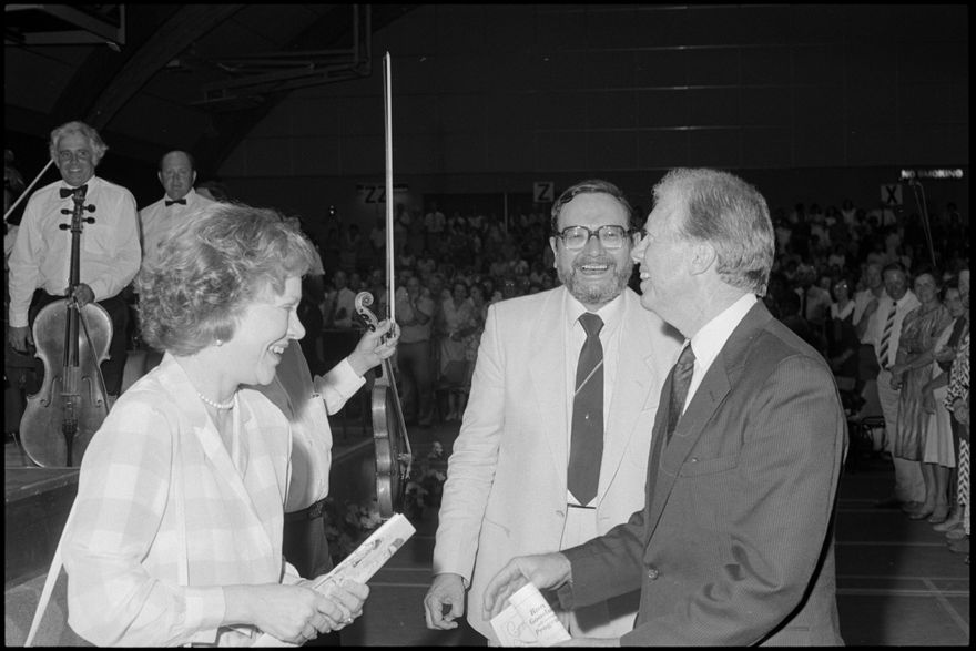 This image was taken by the Evening Standard on the 10th of February 1984 and was published on the 11th. It depicts former United States president Jimmy Carter and his wife Rosalynn attending a promenade concert by the NZ Symphony Orchestra held at Pascal Street Stadium.