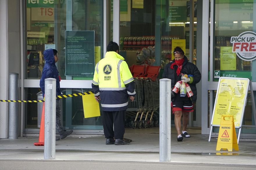 Security in place to manage crowds at the Countdown supermarket during the COVID-19 Pandemic.