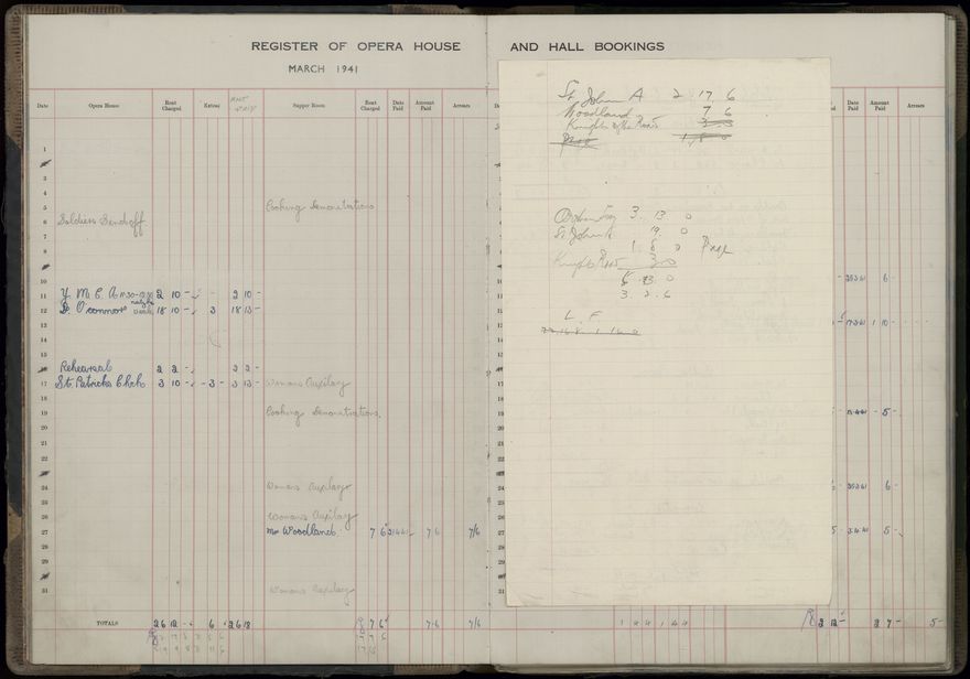 Municipal Opera House and Coronation Hall, Register of Bookings