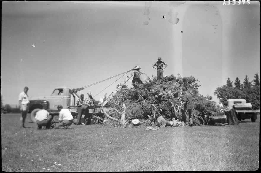 This image was taken for a story that ran in The Manawatu Evening Standard on 3 November, 1959. "The Feilding Jaycees will stage a bonfire at Victoria Park on Guy Fawkes night, November 5. Pictured above is some of the rubbish collected in a drive at Feilding last Saturday by the organisation."