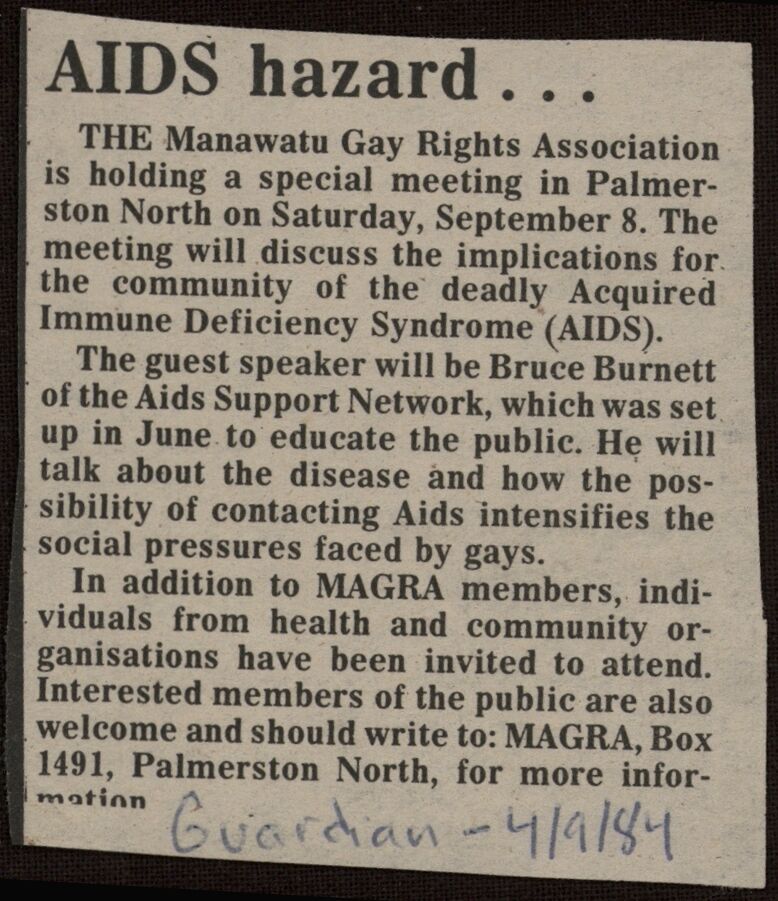 Consisting primarily of clippings from New Zealand newspapers, it covers the subjects of Homosexual Law Reform efforts, the Aids epidemic and New Zealand gay and lesbian rights movements.