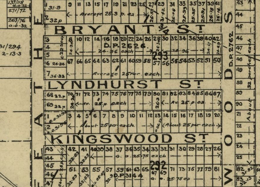 The second image is a derivative of this NZ Cadastral Map - Town Series: Palmerston North Map 4 from 1961 by the Lands and Survey Department, New Zealand. It shows Lyndhurst Street after its extension in 1925, by Mr Frederick Needham, D.P. 7316 section 312.