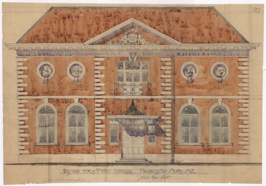 These plans showing two different designs for a two-storey Public Library in Palmerston North were designed by Ludolph Georg West (1846-1919). Neither of these proposed buildings were ever built. The Danish-born architect established an architectural practice in Palmerston North in about 1880. In 1912 he formed a partnership with is son, Ernest Vilhem West, who continued the business after his father's death.