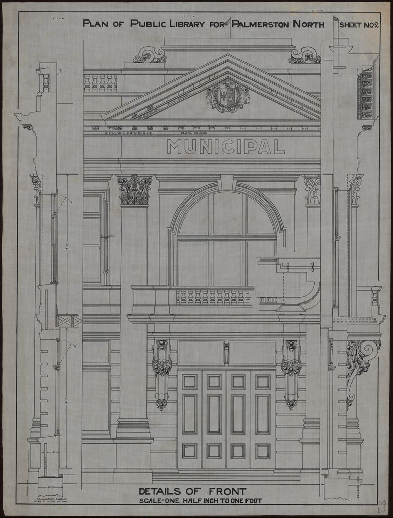 These plans showing two different designs for a two-storey Public Library in Palmerston North were designed by Ludolph Georg West (1846-1919). Neither of these proposed buildings were ever built. The Danish-born architect established an architectural practice in Palmerston North in about 1880. In 1912 he formed a partnership with is son, Ernest Vilhem West, who continued the business after his father's death.