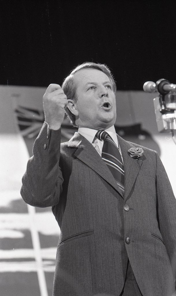 This image was taken for a story that ran in The Manawatu Evening Standard on 1 November 1978 “Labour promise to get nation working” and “Rowling in top form at opening”. Labour leader Bill Rowling opened his general election campaign at Palmerston North’s Opera House with a rousing speech to over 1000 supporters on Tuesday 31 October. Taxation was a key theme in his speech, stating that the best way to drive the economy was “…to leave the earnings of the people in their own pay packets so they can make the decisions as to how and where the money should be properly spent.” The Standard also reported the presence of Labour spokesperson on social welfare and family affairs Whetu Tirikatene-Smith, former MP for Palmerston North Joe Walding and Labour candidate for Manawatu Trevor de Cleene.