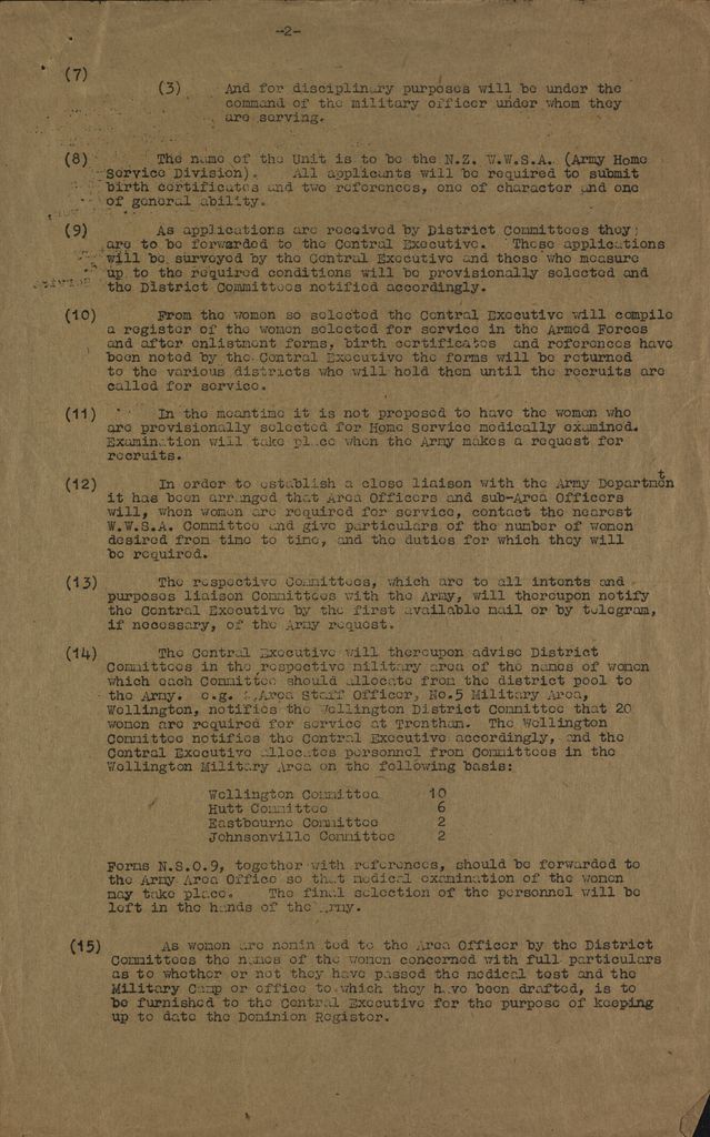 (8) The name of the Unit is to be the N.Z. W.W.S.A. (Army Home