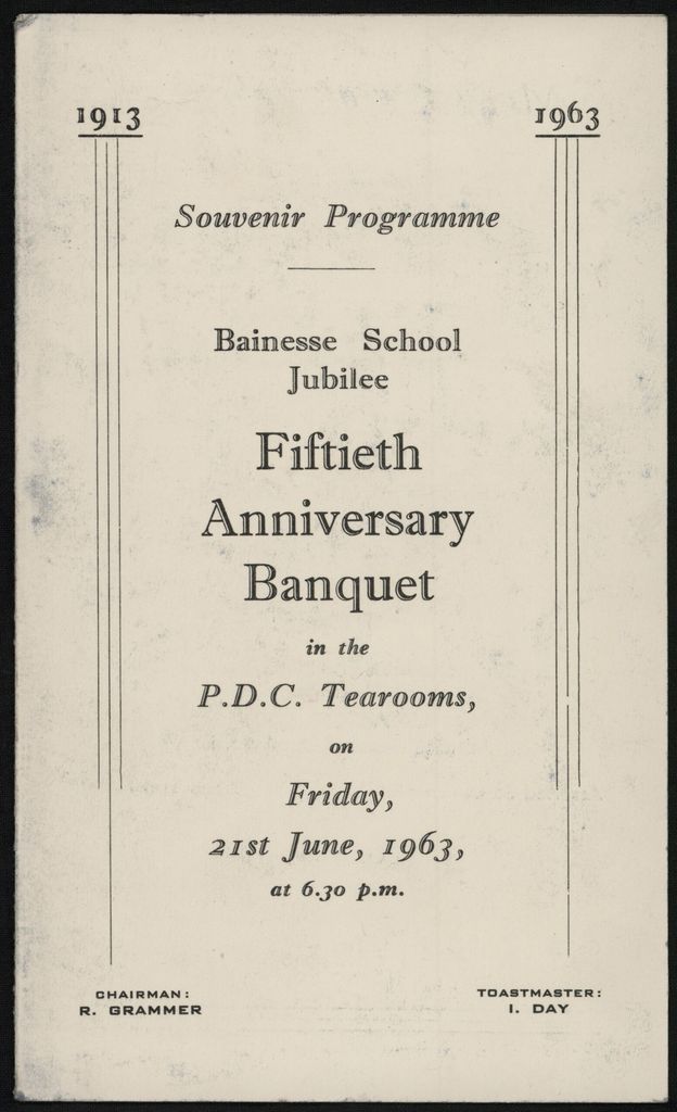 The Grammer family were early Ashhurst residents and the Grammer Family archive contains family information from 1868. Ron Grammer was the son of Tom Grammer and the family lived in Bainesse, close to Palmerston North. Private Ron Grammer served in World War Two. This album covers the Bainesse School 50th and 60th Jubilee celebrations.