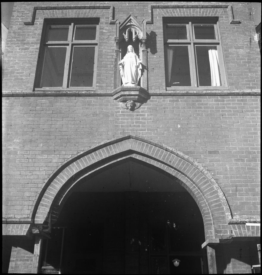 The Fitchett Street Convent was the third built for the Sisters of Mercy in Palmerston North. It was designed by Clere and Clere and built by Trevor Bros in 1925 -1926. It was orginally part of a complex of buildings, with two primary schools and a girls high school adjacent to it. The sisters moved out of the building to live in the community after the schools were closed, in 1982. The three storied, brick building was demolished by the Catholic Church in 1984. The decision to destroy the old convent provoked lengthy controversy. The photograph was taken just before demoliton in May - June, 1984.