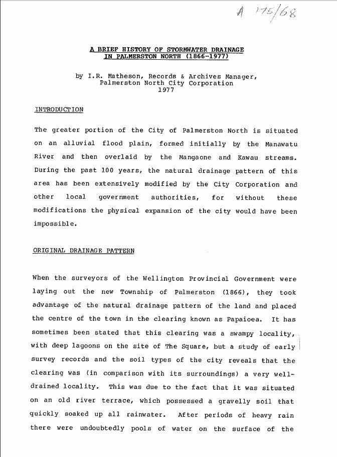 By I.R. Matheson, Records and Archives Manager Palmerston North City Corporation 1977