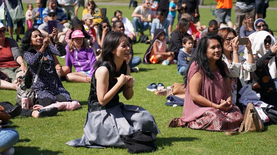 Audience members enjoying the fashion show at the Festival of Cultures, 2018.