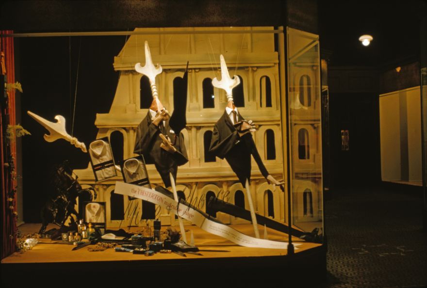 A display of Chesterton brand men's clothing. Allan Smith designed this window display while employed by Milne Choyce. He was first employed by the C M Ross department store in 1959, which was then bought out by Milne and Choyce. He rose to become Display Manager.