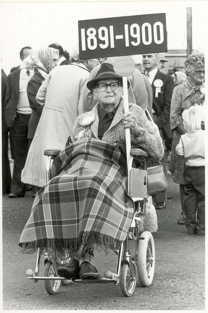Rongotea School celebrated its centennial at Easter weekend, April 18-19 1981. The school was opened March 28 by the headmaster, Mr F Whitcombe. The school, known as the Campbell-town School, had a roll of 11. The Centennial Parade through Rongotea ended at the school, where a roll call and decade photographs were taken. In this photograph, former pupil of the 1891-1900 class Mr Neil Rowe (aged 88) takes part in the Centennial Parade.