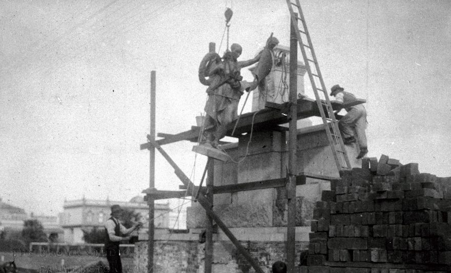 A war memorial to commemorate local soldiers who died in World War One was erected in the centre of The Square, Palmerston North, in 1926. The figure that sits atop the memorial was based on a similar one in Folkstone, England. Today it also commemorates those who died in World War Two, and the Korean and Vietman Wars.