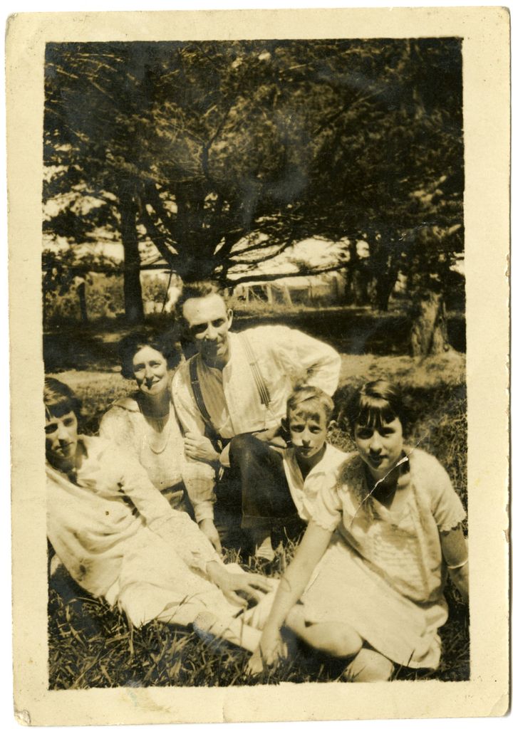 This small photograph album belonged to Mrs R Andrews of Rangitikei House. This photograph bears the caption, "Bob, Nancy, Scott, Grace and Nessie. Auckland. 10/1/27."