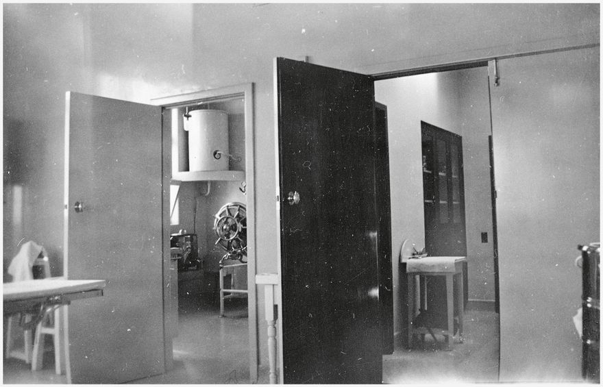 The operating theatre of Northcote hospital is seen here just after the completion of the 1944 renovations. It was originally built about 1904 for Mrs Freeman, for use as a private hospital. The improvements of 1944 was financed by Miss Flower, designed by Mr R Thorrold-Jaggard and constructed by the McMillan brothers. When it reopened in late 1944 the hospital was described as one of the most up-to-date private hospitals in the country. It was run by the Northcote Trust from 1970-1982 when it was sold to the Southern Cross Hospital Trust.