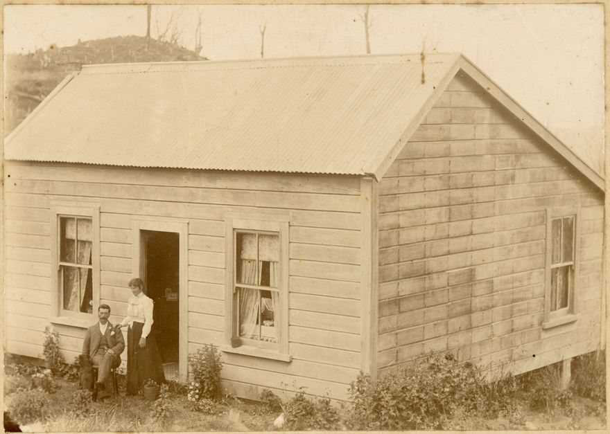 The information accompanying this photograph states “Mr & Mrs Ralfe or Rafe, later had a poultry farm at Ashhurst, Mrs Ralfe had a sweet shop. Mrs Ralfe lived in Cambridge Ave, 2nd house past the garage”. the location is not in Palmerston North.