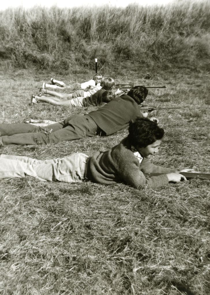 Local cubs shooting guns on a Commando course at Linton Army Camp.