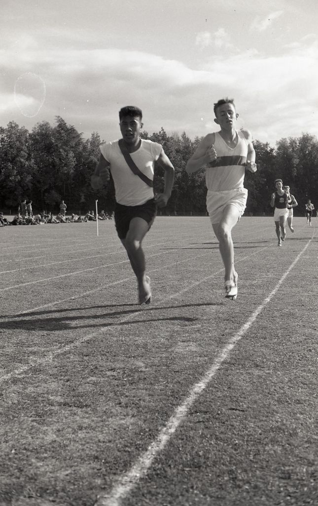Caption: "On Friday15th March, the annual Inter-Catholic Secondary Schools' Athletic Competition was held at Hato Paora College, Parorangi, Feilding. The four schools which took part were as follows: St Augustine's, Wanganui, St Joseph's, Masterton, St Patrick's, Palmerston North, St Paul's Maori Boys' college, Feilding. The Viard Shield was won by St Augustine's, Wanganui, for the second year in succession and the final points were: St Augustine's 49, St Joseph's 41, St Paul's, 33 1/2, St Patrick's 26 1/2. St Augustine's also won the senior and junior Relay trophies and the Intermediate Relay trophy went to St. Joseph's"