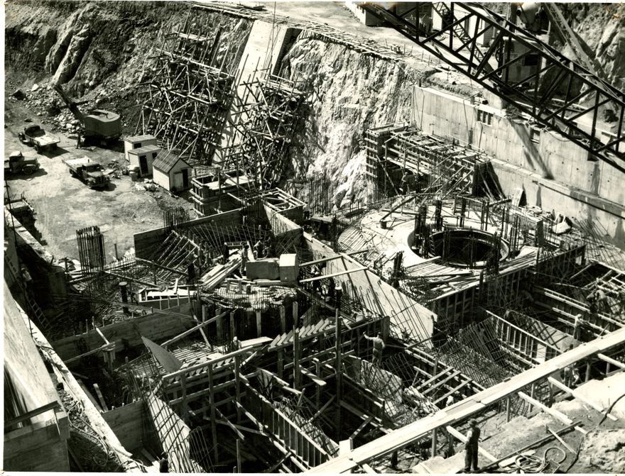 One of a group of photographs from Ron Grammer's working life in bridge engineering in the 1940s and 1950s. Waitaki hydro 1950's.