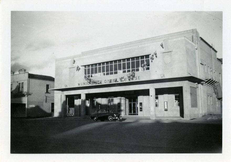 Zona Broughton's car parked in front of the Palmerston North Municipal Opera House