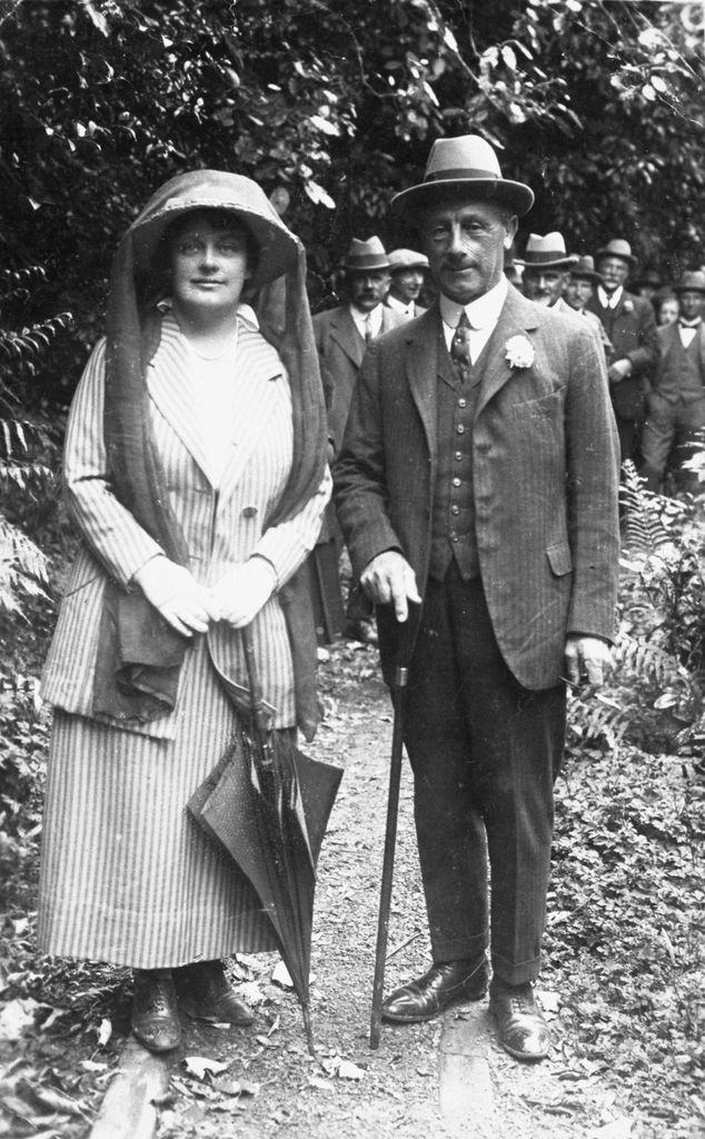 New Zealand's Governor General (1920-1924) Lord Jellicoe and Lady Jellicoe walk through the bush track at the Victoria Esplanade, alongside other dignitaries. James Nash, Mayor of Palmerston North, can be seen behind, over Lord Jellicoe's right shoulder.
