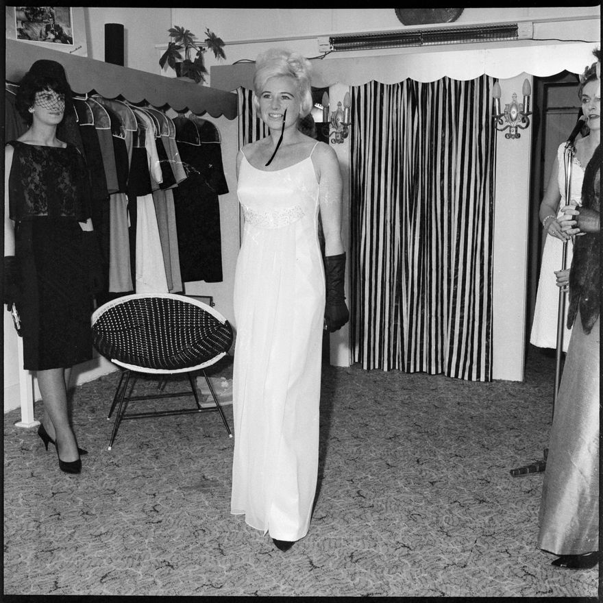 This image was not published in The Manawatu Evening Standard, taken on 18 February, 1964. [A series of images of the Flair Boutique autumn wear show.] See also: 2017N_2017-20_018482, 2017N_2017-20_018484, 2017N_2017-20_018485