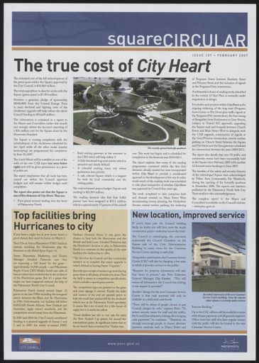 The Square Circular was Palmerston North City Council's monthly community publication, informing Palmerstonians of PNCC initiatives, activites, and events. This month's issue includes: 10 Year Plan, Arena Manawatū, Campbell Reserve, Convention Centre, David Walsh, election, Hopwood Clock Tower, Manawatu Active Transport strategy, Paddy Clifford, rates rebate, recycling, road safety, The Regent, Turitea dam, winter festival, youth.