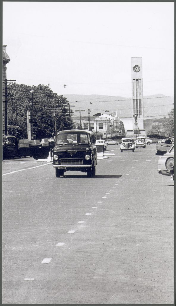 Looking down Rangitikei Street to The Square, with the Clock Tower in prominence.