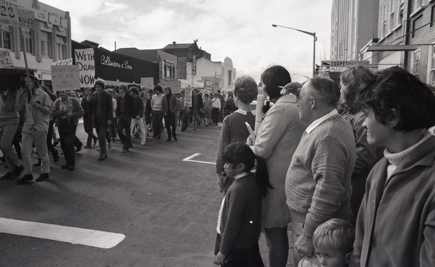 “Sir, - When visiting your city last Friday, I viewed with disgust the parade through town. My father is a First World War veteran, my husband spent six years overseas in the last war, including three and a half in a prisoner of war camp, but nobody paraded through town with placards saying they should be sent home. The men who are overseas at present are all volunteers, nobody has forced them to go. I have a friend who, on his return from Vietnam to New Zealand, immediately re-enlisted. There have been many such exhibitions as Friday’s, but I have yet to see one featuring a Vietnam veteran. What exactly do those grubby, untidy looking people who paraded on Friday expect to achieve? From what I saw of them I should say a spell in the army would not hurt some of them. If those are the people we are to entrust our children to, heaven help the next generation. What a pity they cannot channel their enthusiasm into more worthwhile activities which may bring better results for them, as I am sure the only thing they did last Friday was to make exhibitions of themselves. – DISGUSTED VISITOR, Mangaweka.”