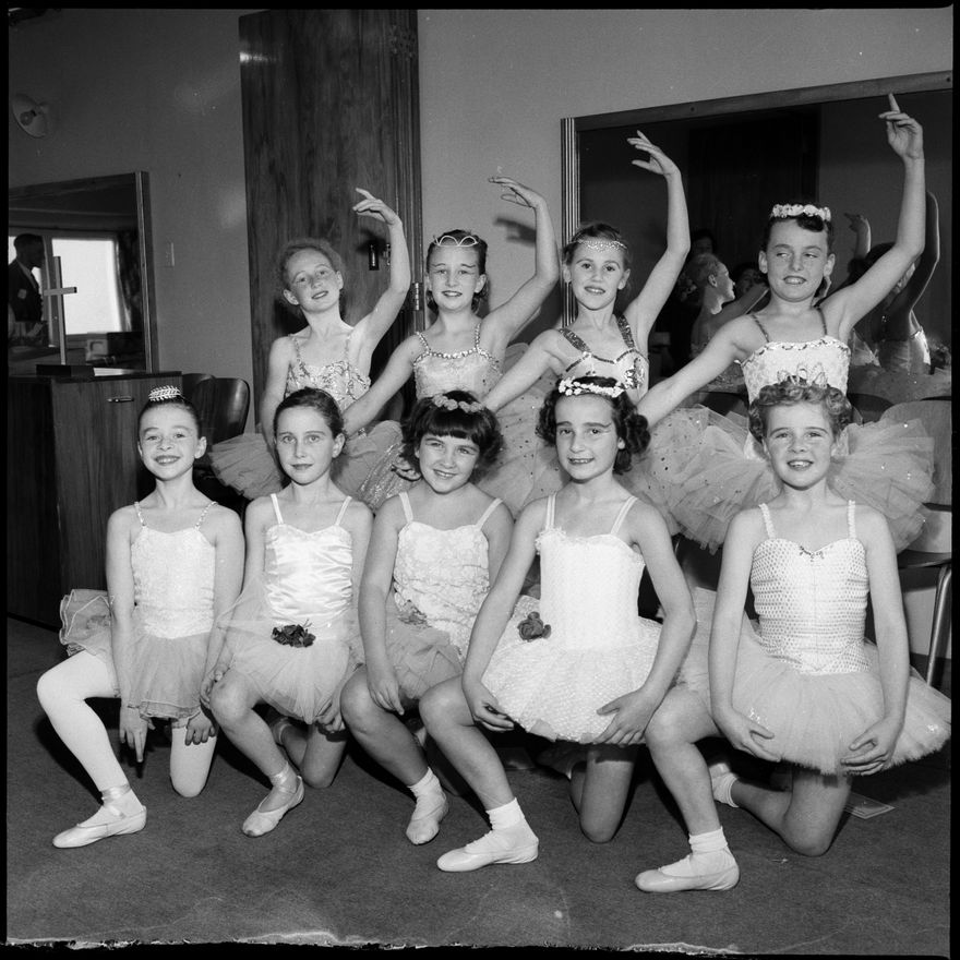 This image was not published in The Manawatu Evening Standard, taken on 6 July, 1963. [Participants in the Palmerston North Thistle Caledonian Society's competition pose.]