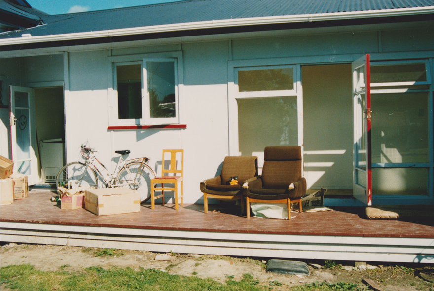 Pictured is the rear deck of a typical Morris Street student flat. The building was bought by the Massey University Student Association, which removed it in c.2013. The house was replaced by modern student flats. Morris Street remains one of Palmy's main student streets, making up part of the "Student City" area.
